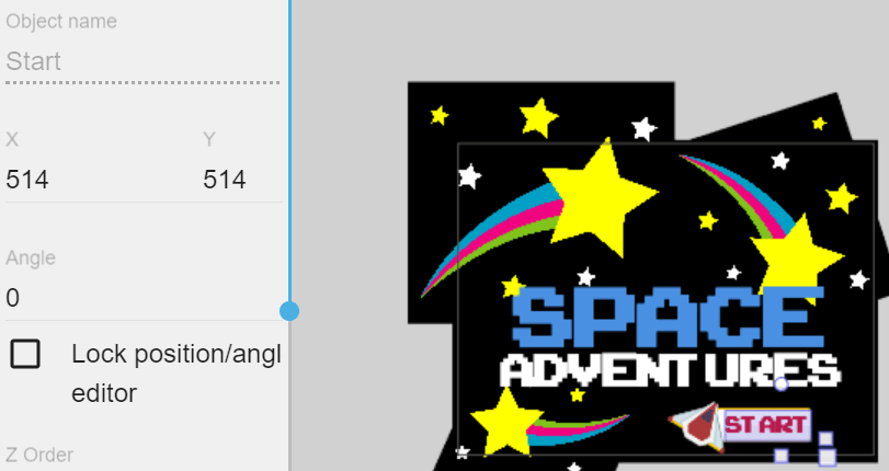 First off, we create a button using the same Panel Sprite object we used earlier. It's a part of UI (User Interface) which is very important as it makes the game look better. Add another text object which displays "Start" and place it on the button UI. It will look something like this.